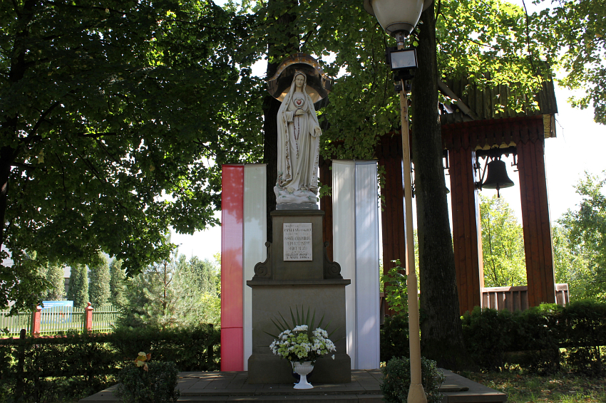Figura Matki Bożej na placu przed Kościołem