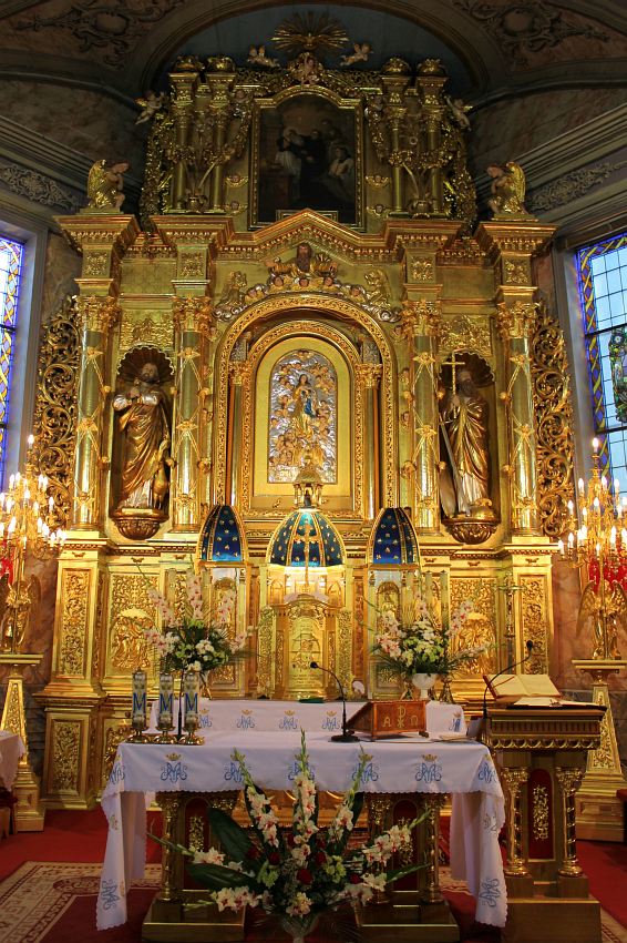 Ołtarz główny wykonany w 1895 r. przez Józefa Aszklara na zlecenie ks. Podgórskiego - wykonany z drzewa lipowego.