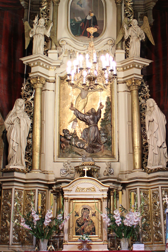 Kaplica (dawniej Krzyża św.) - teraz kaplica Matki Bożej Nieustającej Pomocy. W ołtarzu - przekazanie stygmatów św. Franciszkowi - u góry św. Jan Kanty